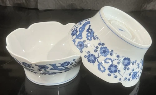 2 Vtg Arita Ware Japanese Blue & White Porcelain Scalloped Bowls Signed 6¼" Rice