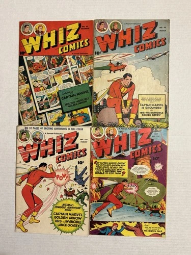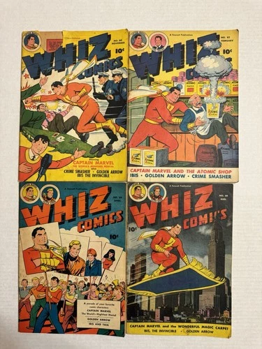 Whiz Comics Lot#92, 95, 124, 135 Golden Age 1947-51 RAW Low Grade Captain Marvel