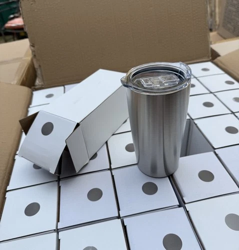 Full Box Of 20 Stainless Steel Travel 530ml Tumblers With Sip Lids