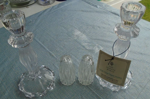 Candle Holder Pioneer Woman 8” Taper & Salt Pepper Shakers Clear Glass