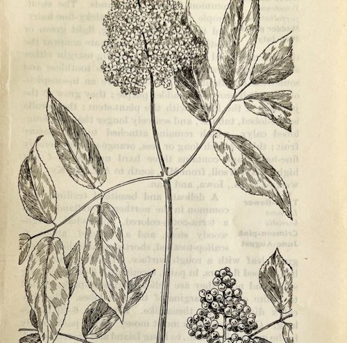 1905 Red Berried Elder Wild Flower Print Pen & Ink Lithograph Antique