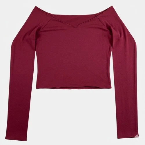 Wild Fable Off the Shoulder Long Sleeve Crop Top Burgundy Maroon Womens Size XXS