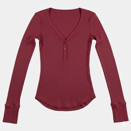 Wild Fable Womens Size XXS Ribbed Henley Long Sleeve T-Shirt Burgundy Red