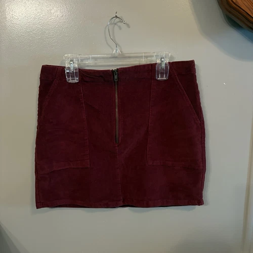 Wild Fable Deep Red Burgundy Corduroy Front Zip Mini Skirt (Women's 16)