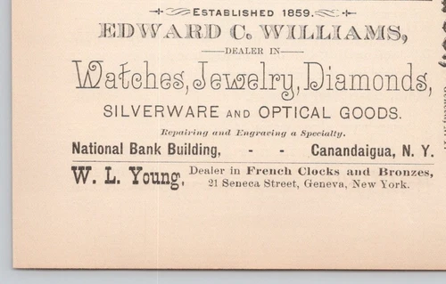 1891 Edward C Williams Watches Jewelry Optical Goods Canandaigua NY Print Ad
