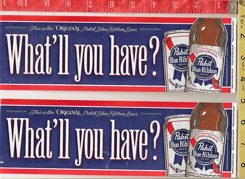 2 Pabst Blue ribbon bumper stickers or window display decals