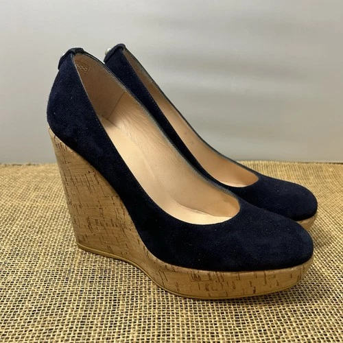 Stuart Weitzman Corkswoon Navy Suede Cork Wedge Platform Heels Shoes Size 6M 4.5