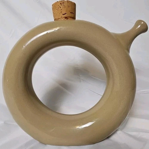Vintage Hartstone Pottery Circle Donut Wine Decanter USA w Cork