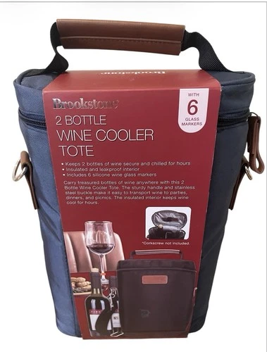 Brookstone 2 Bottle Wine Cooler Tote Insulated Picnic Black NEW