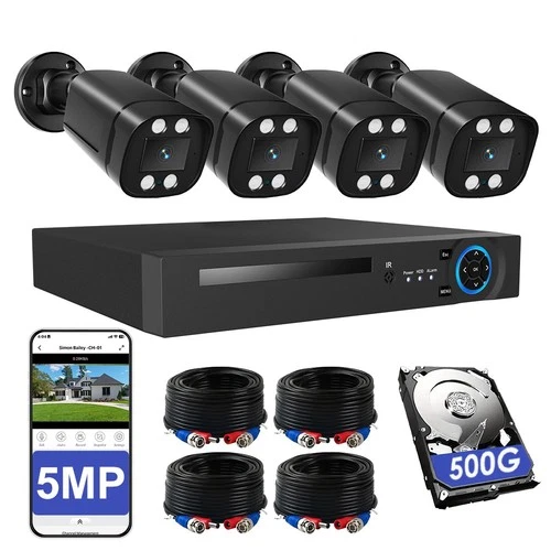 [24/7] CCTV Camera System 4CH DVR Outdoor 5MP Home Remote View+500GB Hard Drive