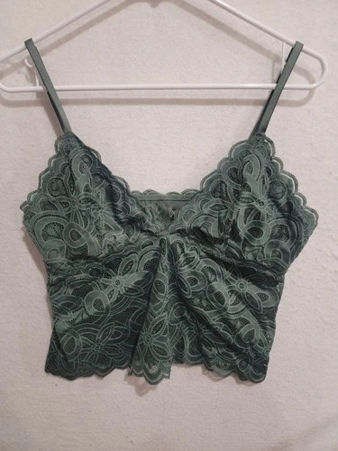 Aerie Real Good Green Floral Lace Longline Bralette Size Large Adjustable Straps