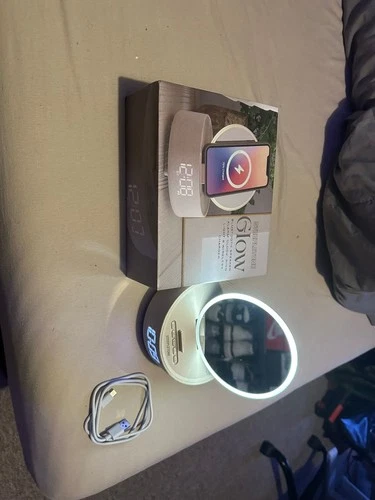 Steepletone Light Up Mirror Wireless Phone Charger Bluetooth Speaker Alarm Clock