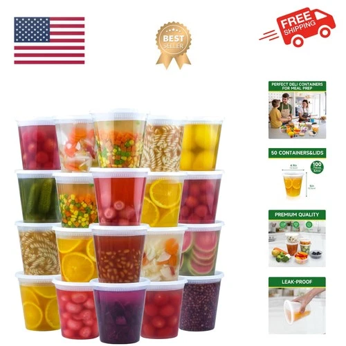 50 Set 32 oz Deli Containers with Lids, Leak-Proof BPA Free Plastic Take Out ...