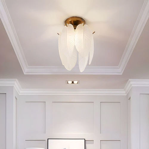 White Elegant Plume Ceiling Light with Gold Base For Entryway or Foyer