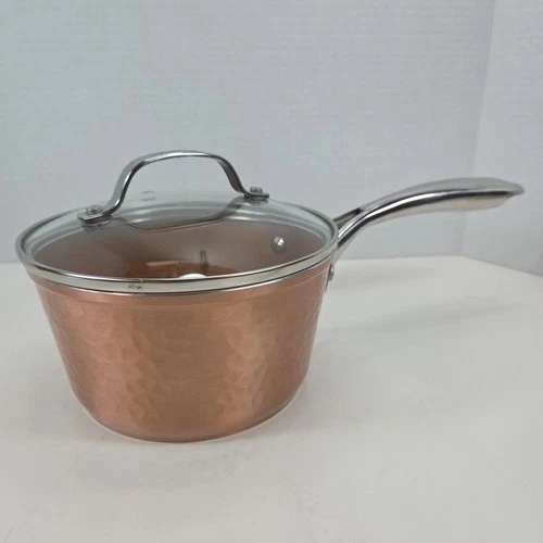 Gotham Steel Hammered Copper 1.5qt Non-stick Saucepan 6.5" With Glass Vented Lid