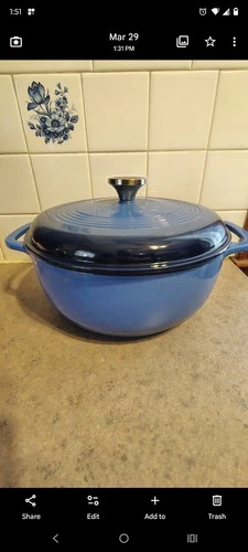 Lodge Blue Cast Iron Large 6 Quart Enameled Dutch Oven With Lid