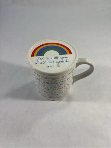 Coffee Cup Mug Hallmark Mug Mates "God Is With You" Bible Verses 1985 W/ Lid