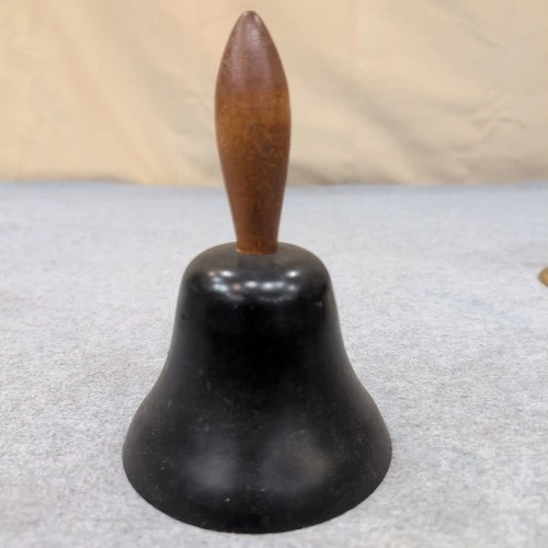 Vintage Metal School Hand Bell Cherrywood Handle - Desk Service Dinner - LOUD!