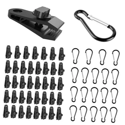 Tarp Clips Clamps Heavy Duty Lock Grip,60 PCS Tent Clamp with Carabiners Tie
