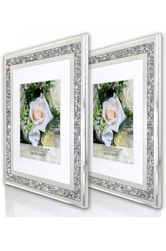 Set of 2 Crystal Silver Mirror Frame 16x20" with 11x14" Mat, Crushed Diamond