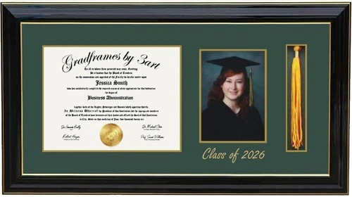 Wood Diploma Frame with 5x7 Photo & Tassel Holder Personalized Black/Green H 7x9
