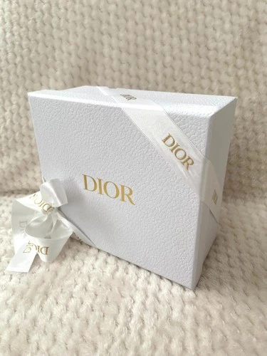 DIOR Designer Luxury White Textured Gift Box with Tissue & Ribbon, Present Box