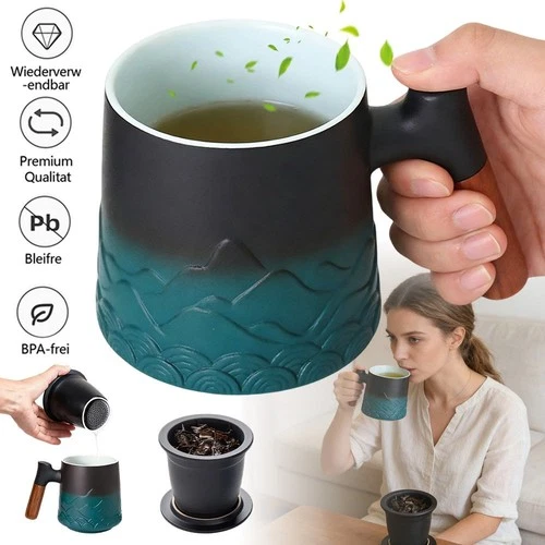 Tea Mug with Infuser Ceramic Tea Cup Portable Reusable Traditional for Steeping