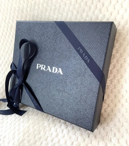 PRADA Luxury Designer Gift Box Navy Textured with Tissue & Ribbon Present Box