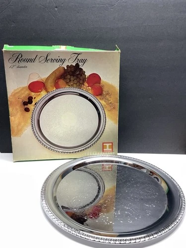 1978 Irvinware Round Serving Tray 12” With Box Vintage MCM