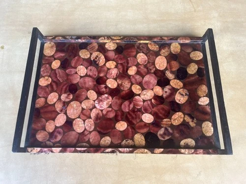 Vintage R&Y Augousti Paris Serving Tray with Inlay Design 17.5" x 11.75" x 2.25"