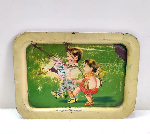 1950s Vintage Kids With Kite Graphics Tin Tray Decorative Serving tray TR41