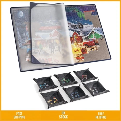 Portable Jigsaw Puzzle Board with 6 Sorting Trays & Dust Cover 1000 Piece