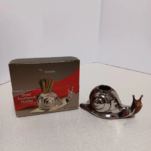 Vintage Wm. A. Rogers Silverplate Snail Toothpick Holder - Original Box - Japan