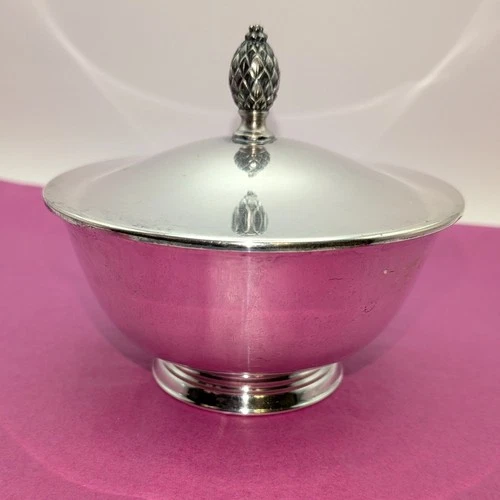 WM A Rogers Paul Revere Reproduction Silverplate Sugar Bowl Pineapple Finial VTG