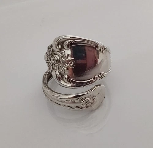 WM.A.Rogers Oneida LTD Silver Plated VTGSpoon Ring, Floral, Stamped, Size 6-6.5