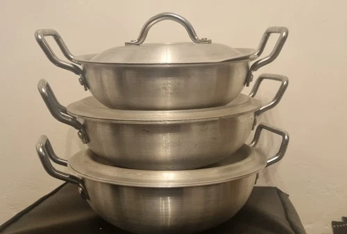 3pcs 26,28,30cm Aluminium Wok Kadai Karahi Cooking, Deep Frying Round Pot Set