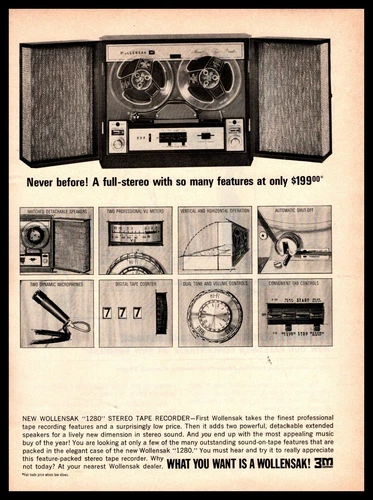 1964 Wollensak 1280 Stereo Tape Recorder Detachable Speaker Vintage 3M Print Ad