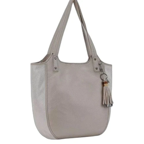 The Sak Women's Beige Shimmer Pebble Leather Hobo Shoulder Bag Tote Bag