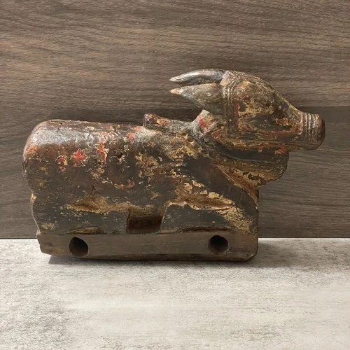 Antique Hand Carved Wood Nandi Figure Sacred Bull Shiva India Polychrome 9.5"x6"