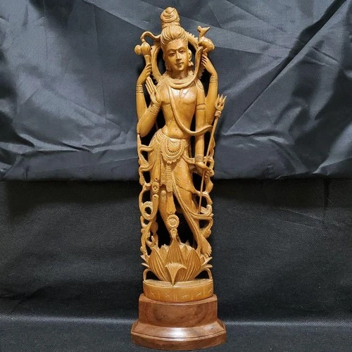 Shiva Indian God Wood Carving Buddha Statue Kannon Shakyamuni Tathagata #K2929