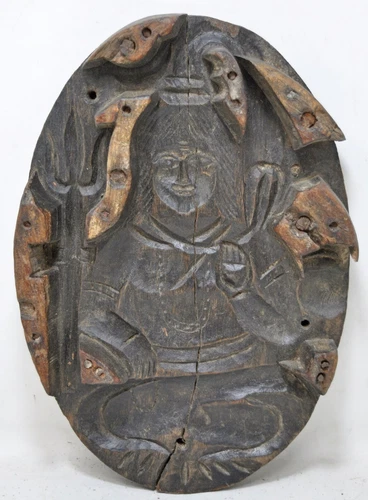 Antique Wooden God Shiva Family Carving Panel Plaque Original Old Hand Carved