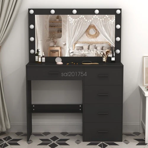 Dressing Table w/ 11 LED Bulbs 3 Modes Mirror 5 Drawers Makeup Vanity Desk Black