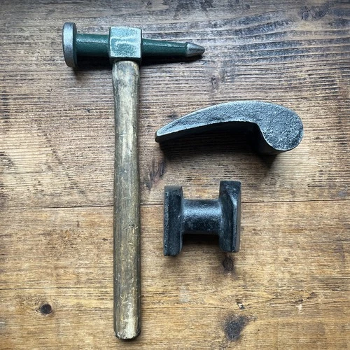 VINTAGE PANEL BEATING HAMMER & 2 DOLLY’S VINTAGE TOOLS