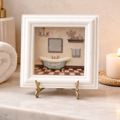 Victorian 3D Bathroom White Shadow Box Wall Art Clawfoot Tub Miniature Diorama