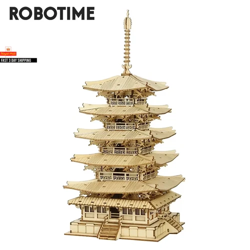 Robotime Rolife 275Pcs DIY 3D Five-Storied Pagoda Wooden Puzzle Game Assembly Co
