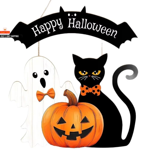 New Happy Halloween Door Hanging Pendant Pumpkin Wooden Door Wreaths DIY Horror
