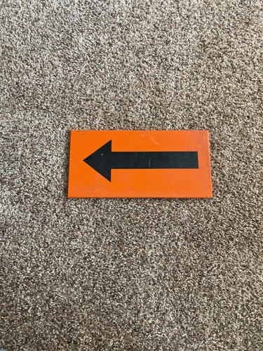 ORANGE WITH BLACK POINTING ARROW WARNING WOODEN VTG 1950'S HAND PAINTED SIGN
