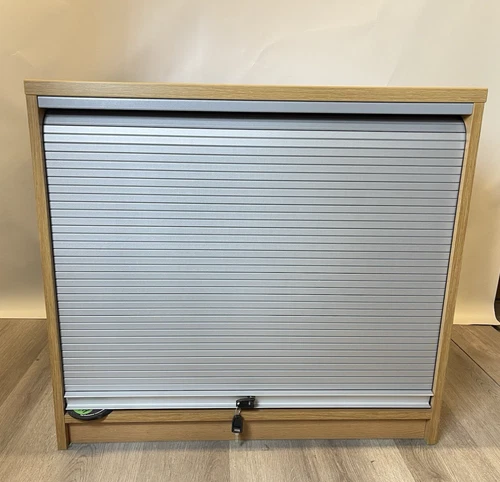 Wooden Office Storage Cabinet with Rolling Metal Door – Compact & Secure keys