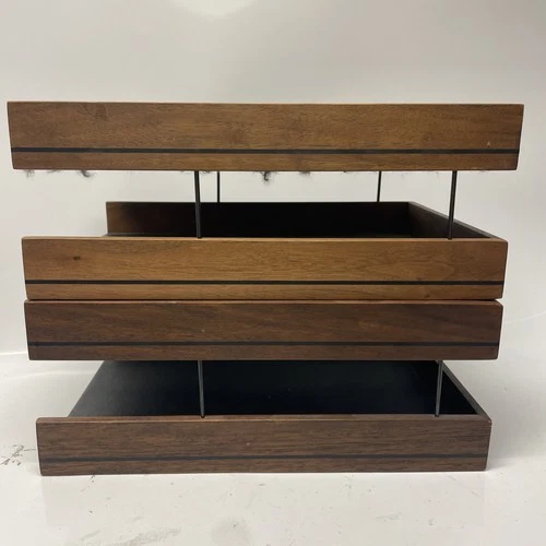 Set of 2 Vintage Wooden File Office Organizer Cabinet Shelf Brown