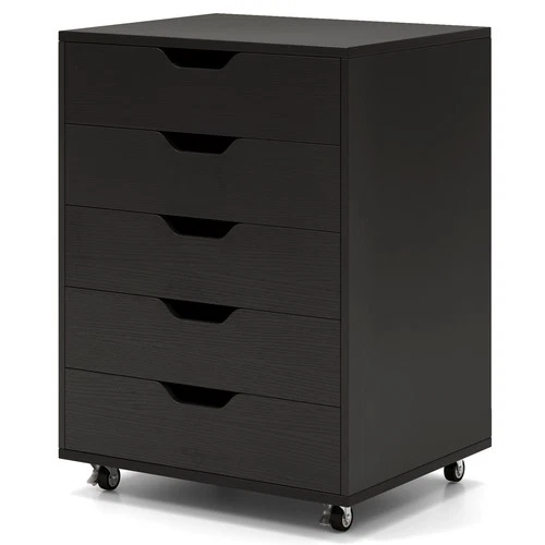 5 Drawer Filing Cabinet on Wheels Wooden Storage Cabinet with Lockable Black